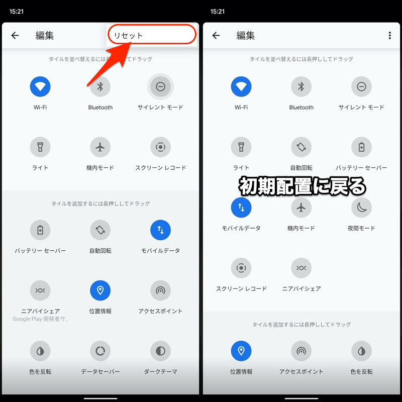如果您遇到任何问题,例如“快速设置面板消失”或“名为●●的图块未出现”,请尝试此重置操作。