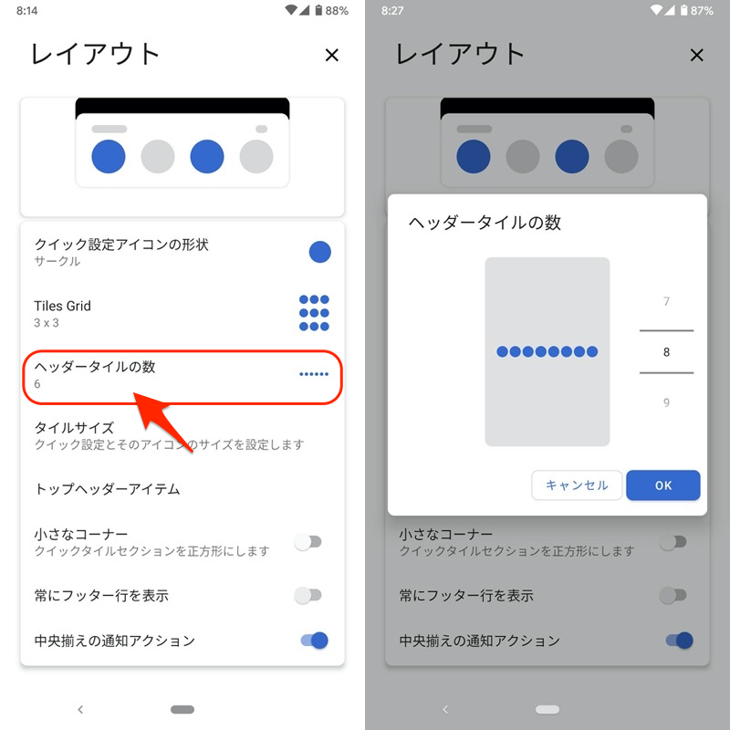 同样,您也可以调整快速设置第一行中显示的标题中的图块数量。