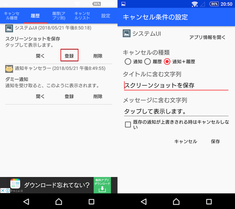 通知将显示在通知取消程序的“历史记录”选项卡中,您可以从“注册”中决定取消条件。