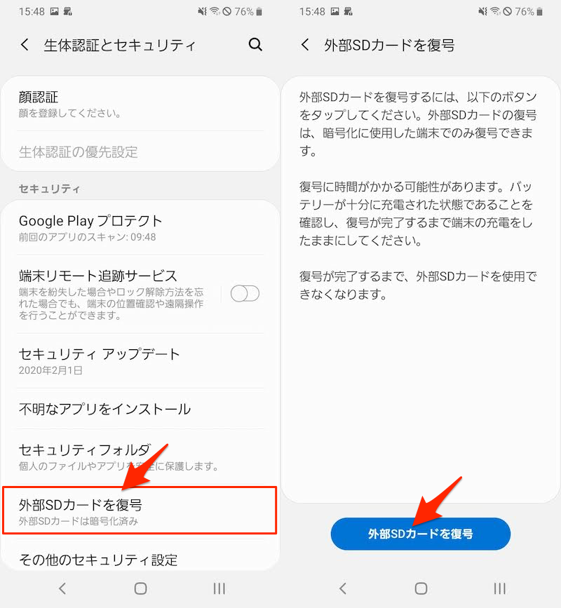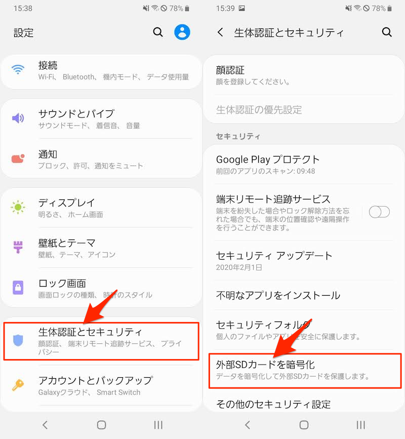 外部SDカード暗号化 外部SDカードを暗号化しました。