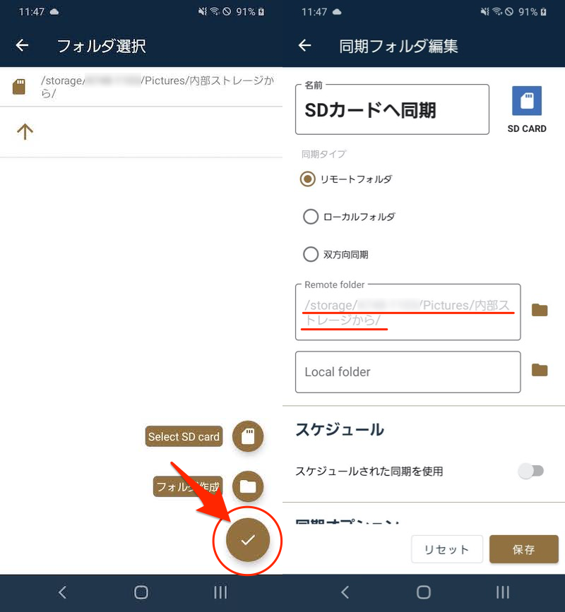 之后,它将按照“时间表”调整的时间间隔自动同步,因此,如果您对多个内部存储文件夹进行相同的设置,则可以将Android上的任何存储目的地更改为SD卡。