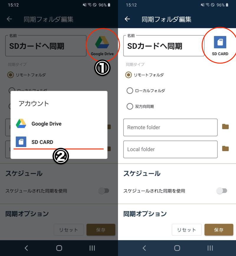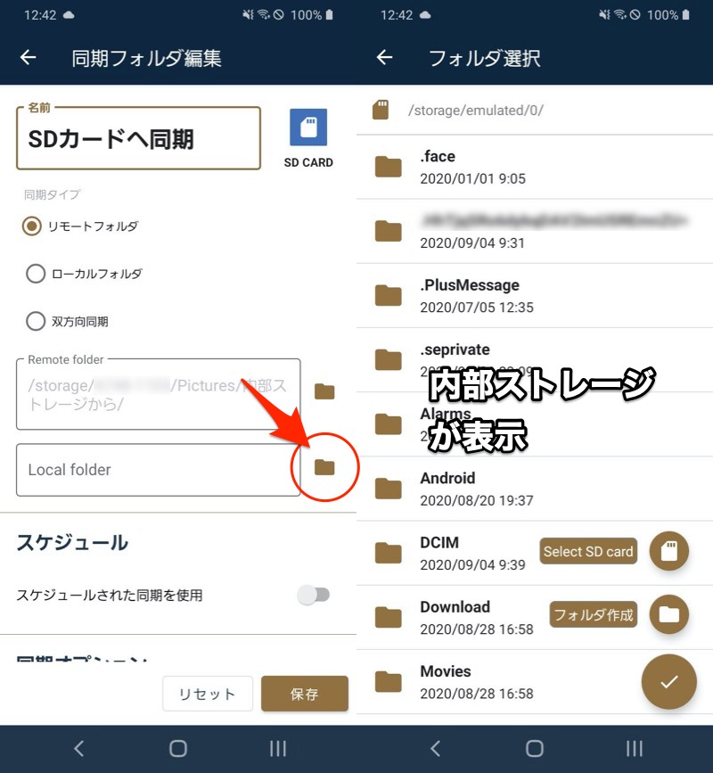 FolderSync – 如何将存储位置从 Android 更改为 SD 卡