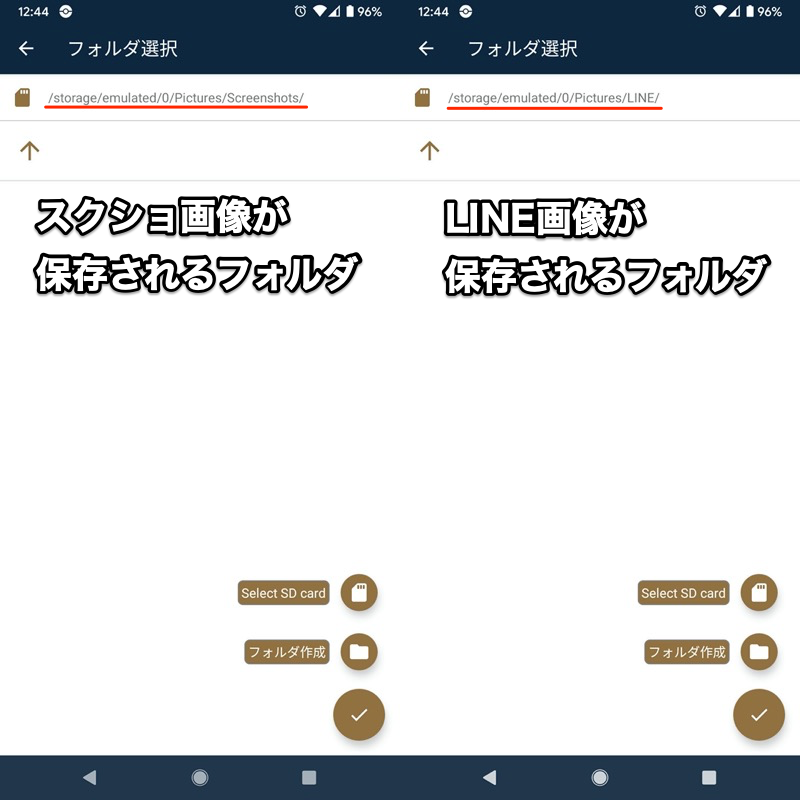 (左)用于保存屏幕截图的文件夹(右)用于保存从 LINE 获取的图像的文件夹