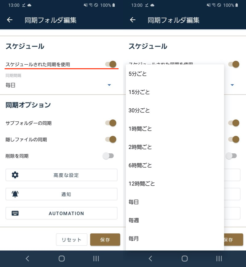之后,它将按照“计划”调整的时间间隔自动同步,因此,如果您对多个内部存储文件夹进行相同的设置,则可以将Android上的任何存储目的地更改为云端。