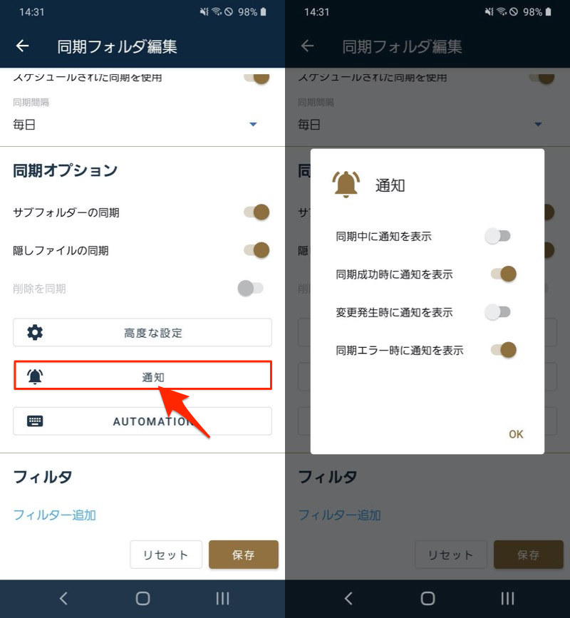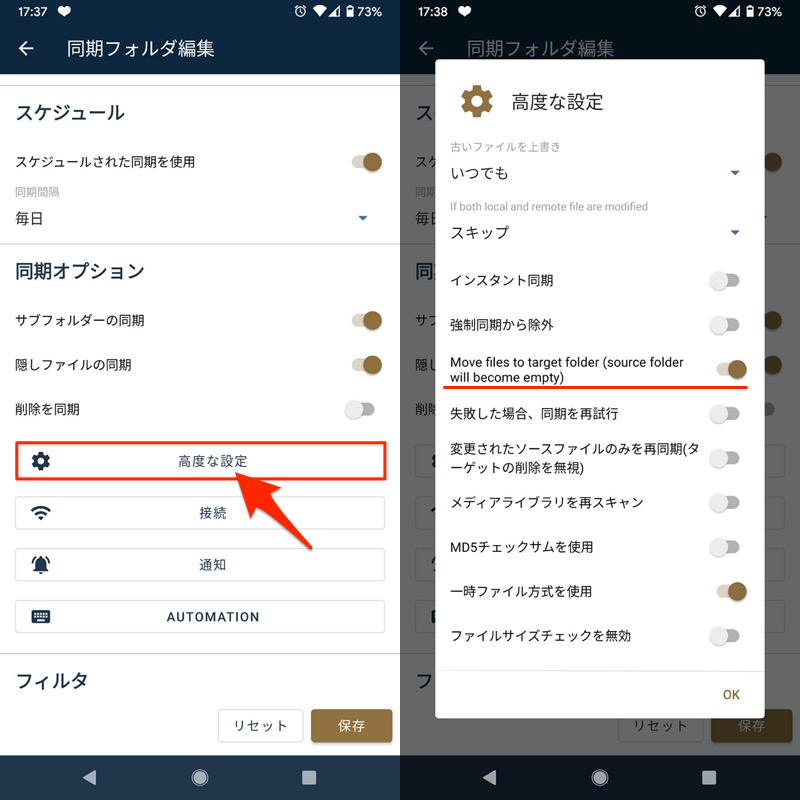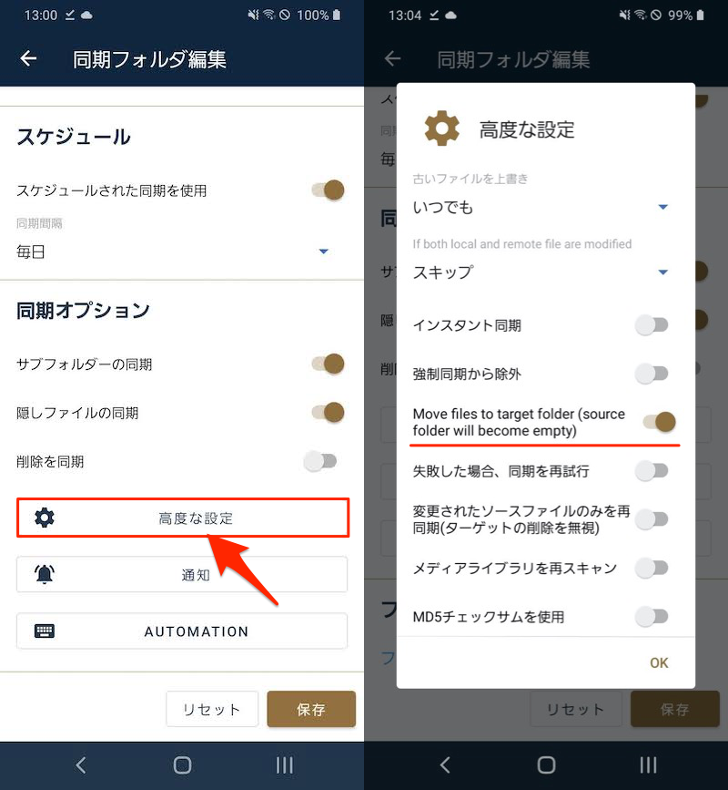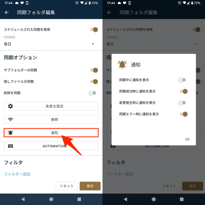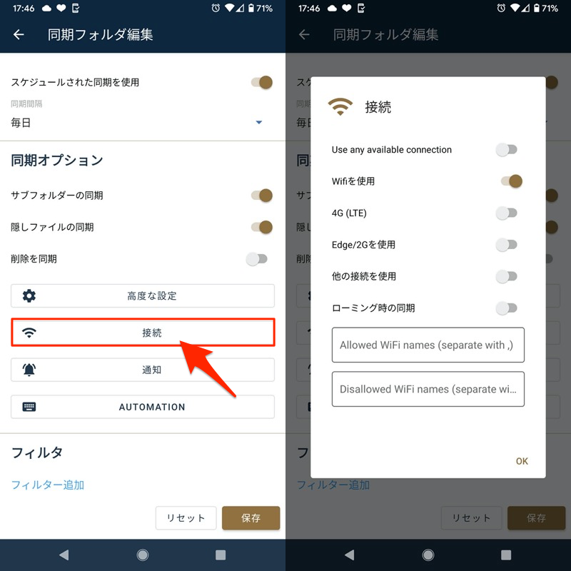 FolderSync具有各种自定义元素,例如限制同步目标(过滤功能)和指定同步条件(例如,仅在充电时同步)。