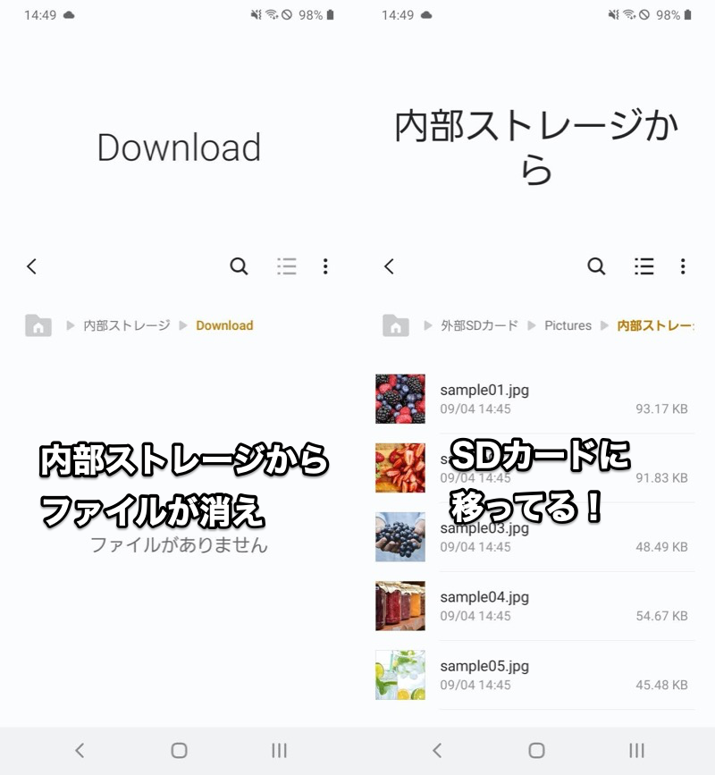 将内部存储“下载”同步到 SD 卡的示例。文件已移至 SD 卡。