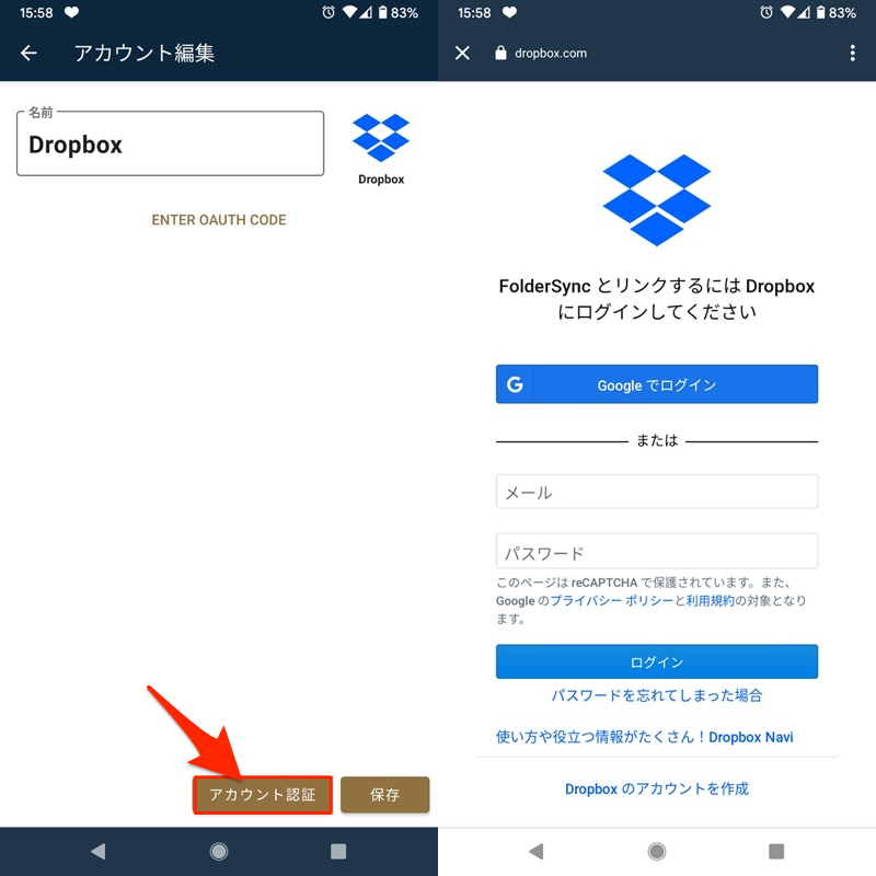 设置您想要与FolderSync 链接的在线存储服务。