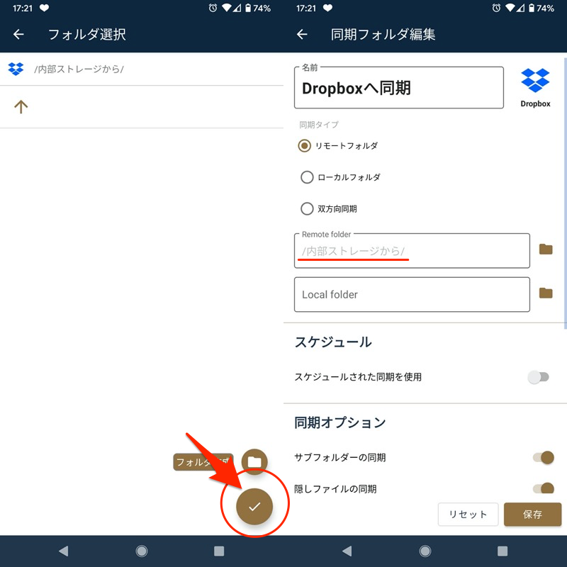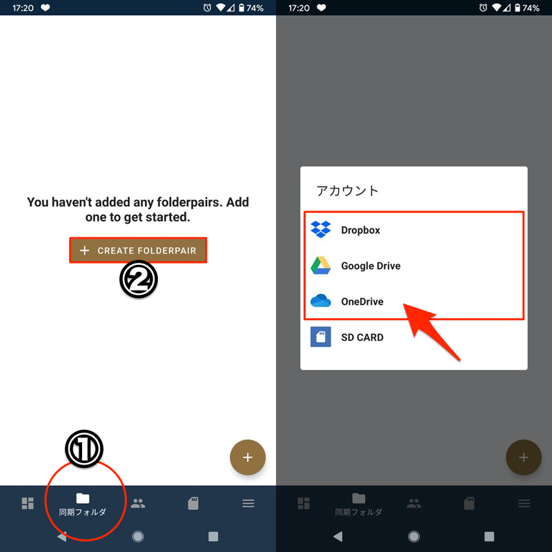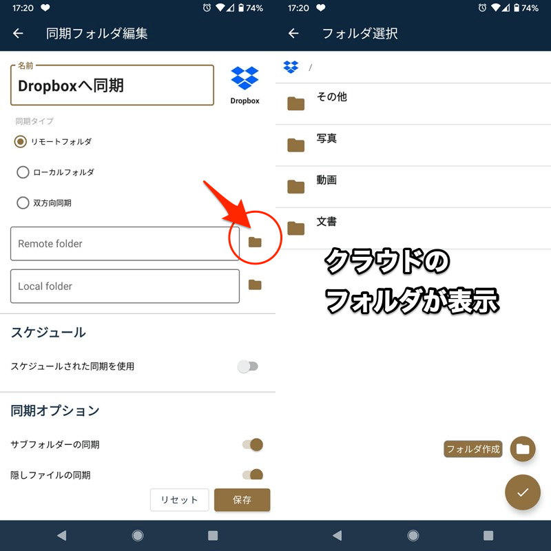 步骤 2:使用FolderSync 将文件从内部存储移动到云端