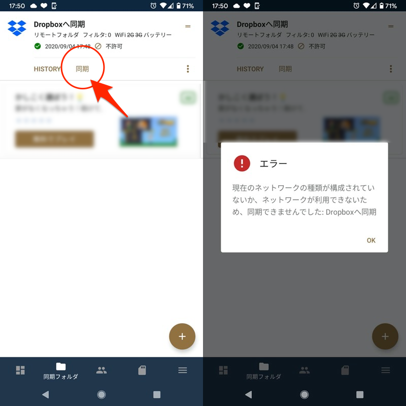 現在のネットワークの種類が構成されていないか、 ネットワークが利用できないため、同期できませんでした