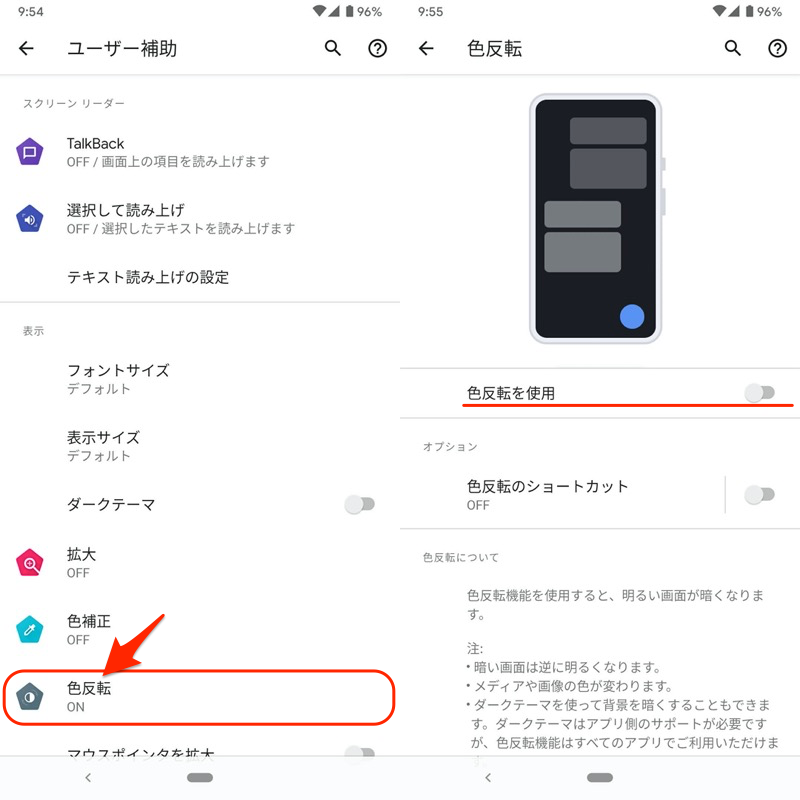 颜色反转也会影响内容本身,因此很可能会导致屏幕可见性问题。