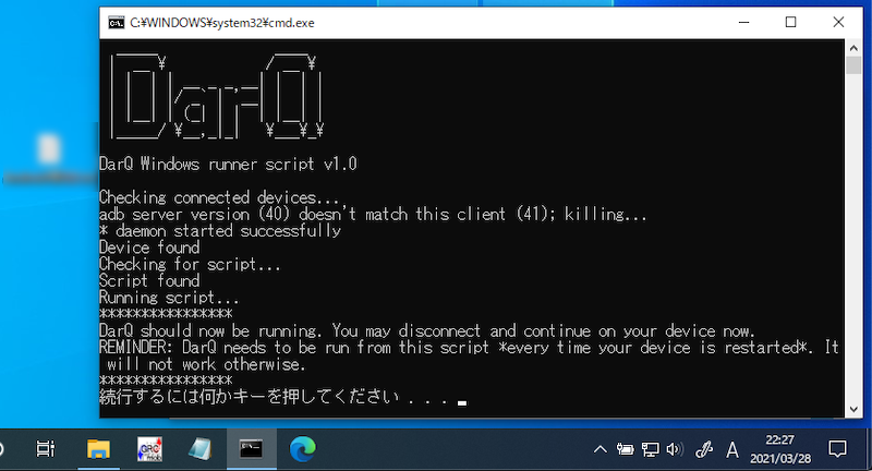 DarQ 需要从计算机输入 adb 命令作为初始设置。