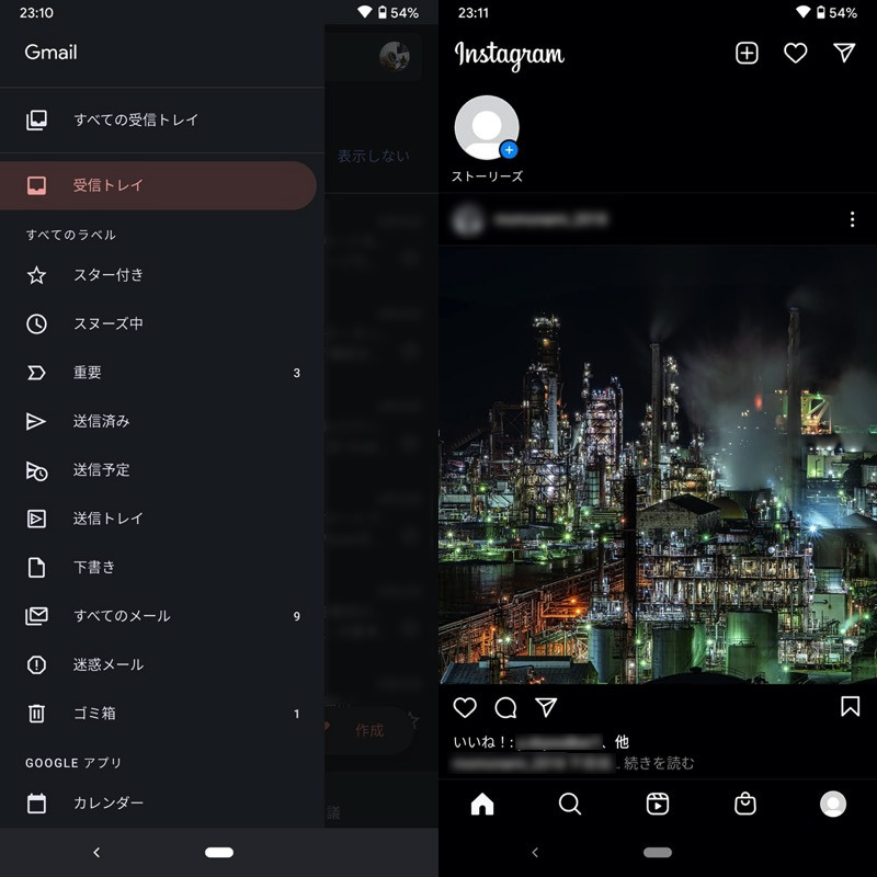 Gmail(左)等谷歌正版应用程序和 Instagram 等主要应用程序也受到影响(右)。