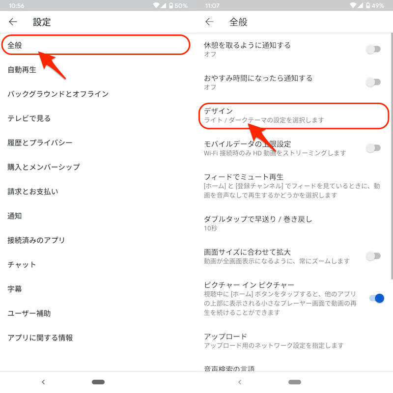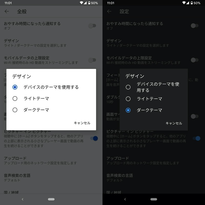 我以 YouTube 为例进行了解释,但作为一般规则,Google 正版应用程序在应用程序端有一个黑暗主题设置。