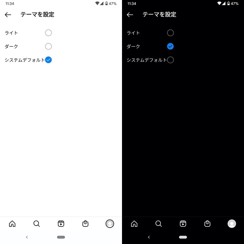 我以 Instagram 为例,但其他应用程序的设置菜单中也可能有“显示”或“主题”项目。