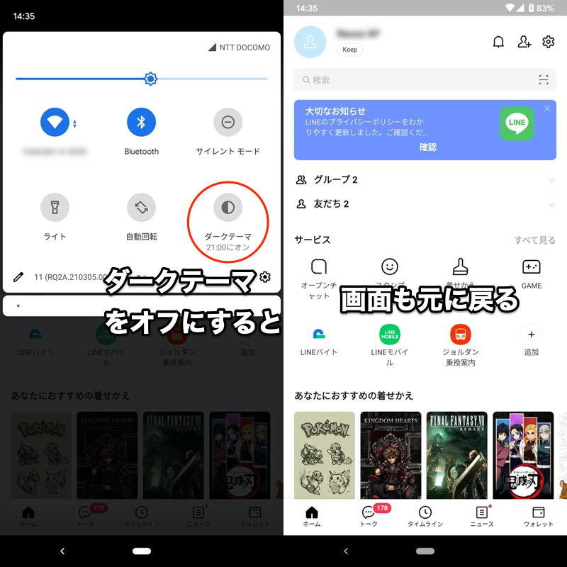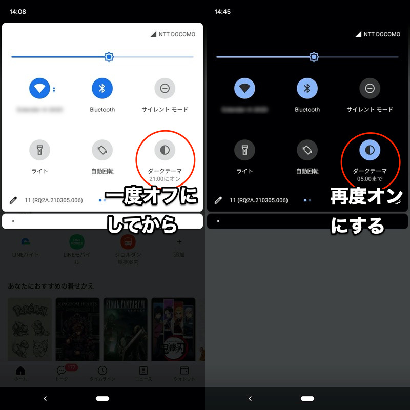 还可以设置图块,这在您想要暂时打开/关闭深色主题的情况下很有用。