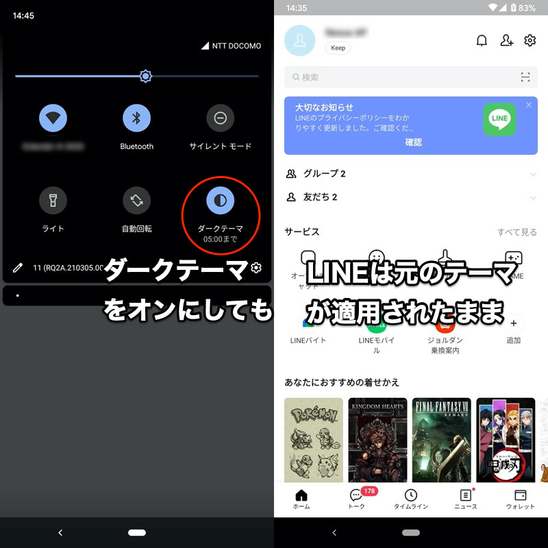 如果在此状态下启用深色主题,它也会反映在通常排除的应用程序中。