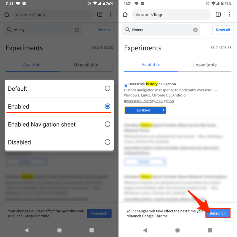 此方法已使用 Chrome 版本 83 进行了测试,但由于此方法使用测试功能,因此根据环境的不同,它可能无效。另外,由于与手势导航冲突,请返回传统的三键导航栏。