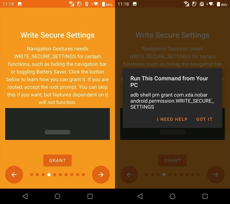 adb shell pm grant com.xda.nobar android.permission.WRITE_SECURE_SETTINGS