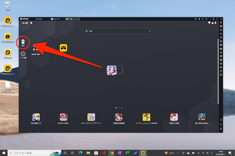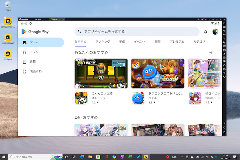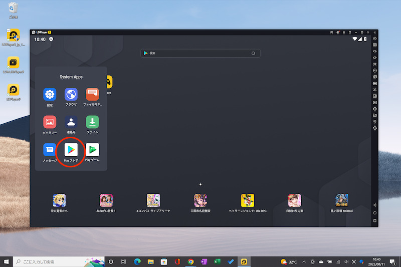 LDPlayer 主屏幕。设计与普通 Android 类似。