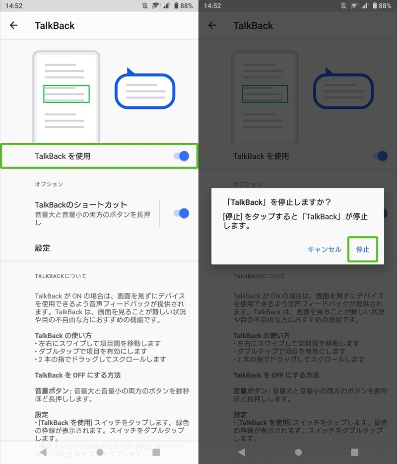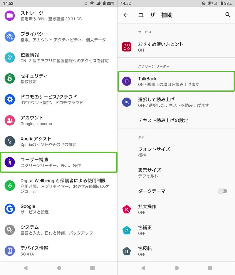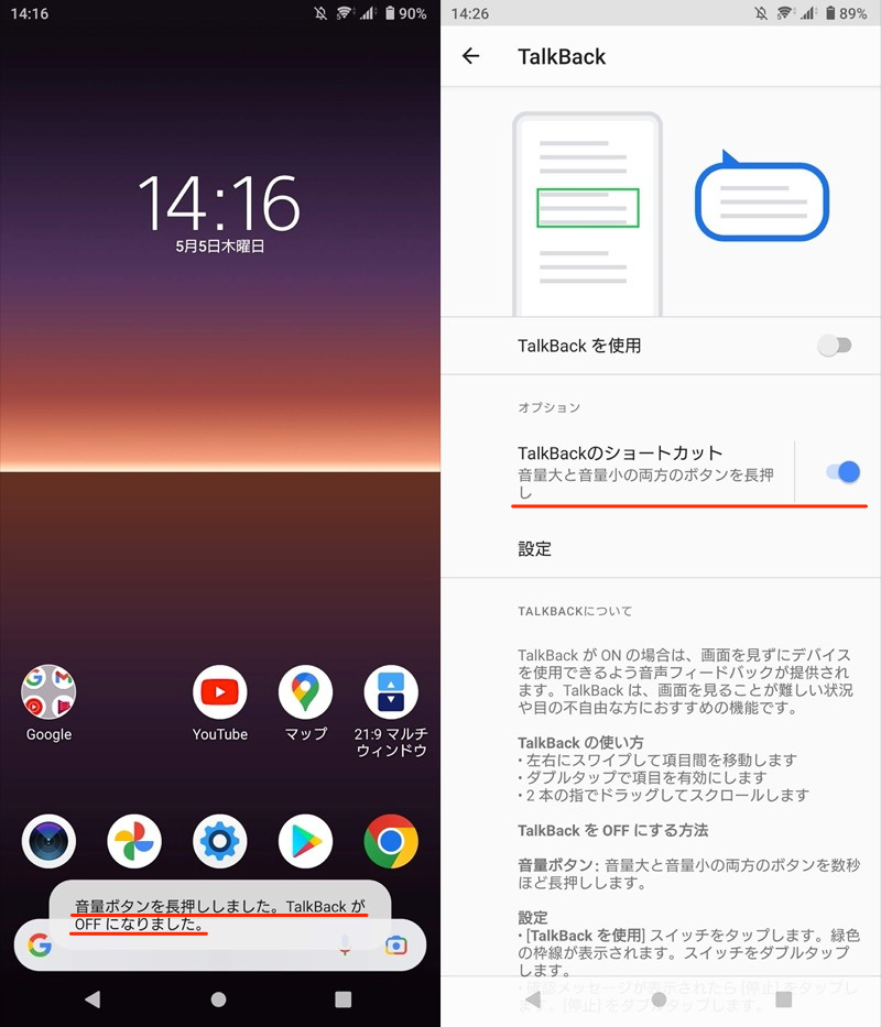 然而,启用 TalkBack 后,特殊操作与平常不同,因此可能会出现甚至无法进入菜单的情况。
