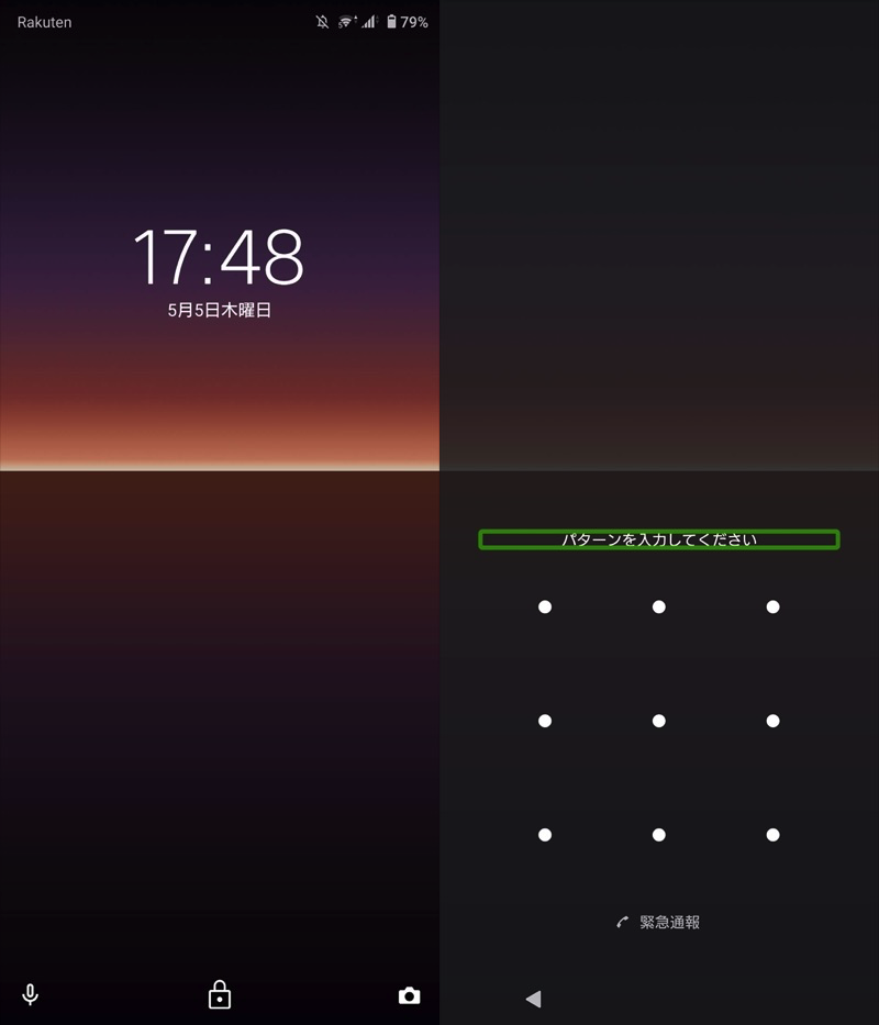 Xperia 10 II 锁屏示例。需要用两根手指来绘制图案。