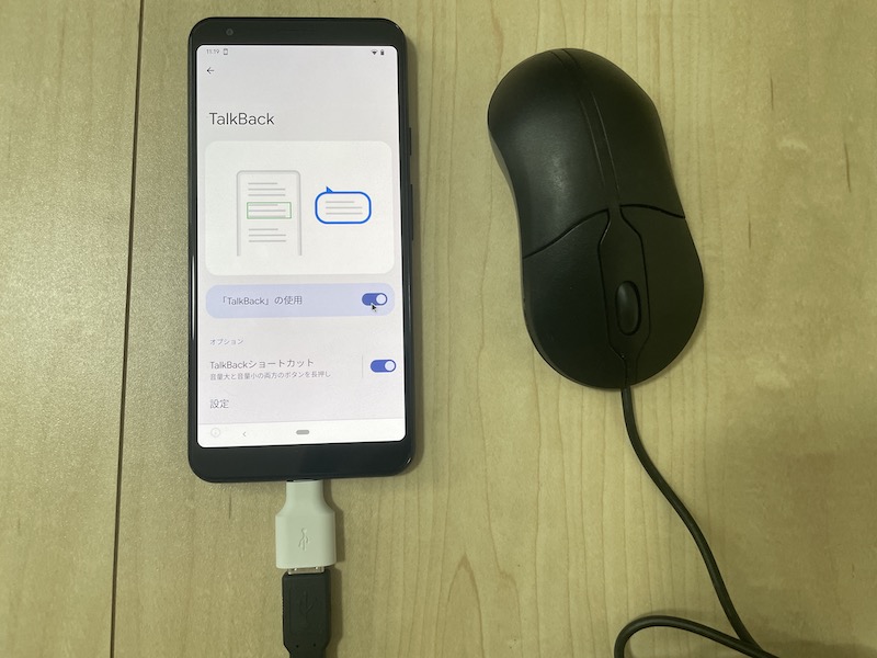使用鼠标有线连接操作 TalkBack 设置菜单的示例。