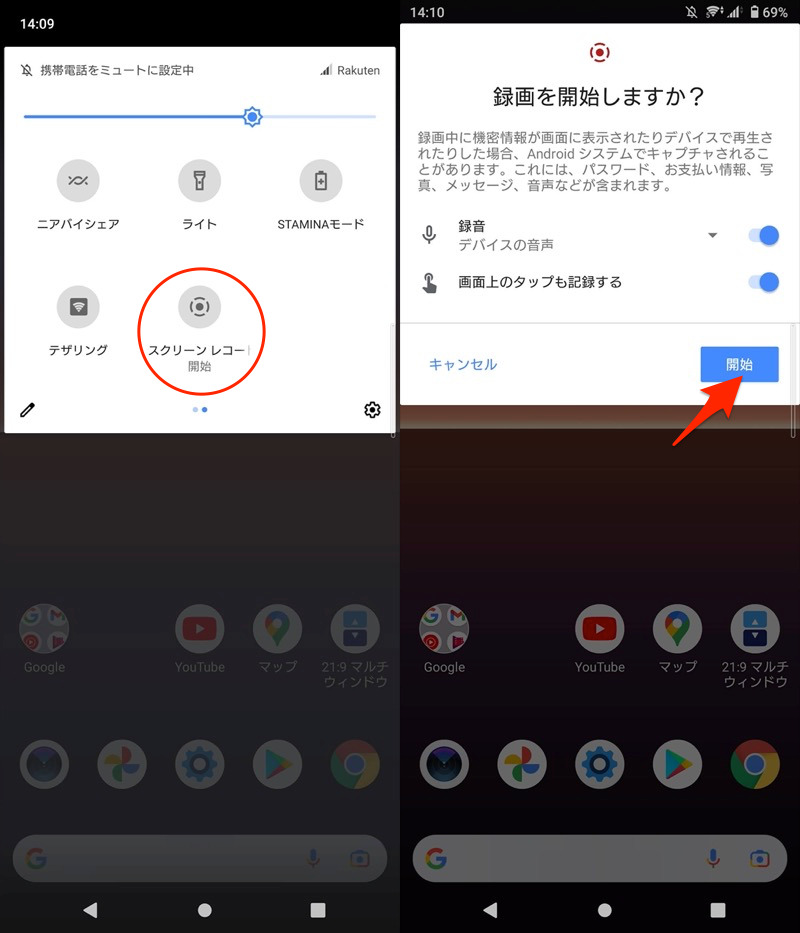 有关2模式屏幕拍摄的详细信息,请参阅相关文章[如何在Android上录制屏幕!通过屏幕录制捕获内部音频] 进行了解释。