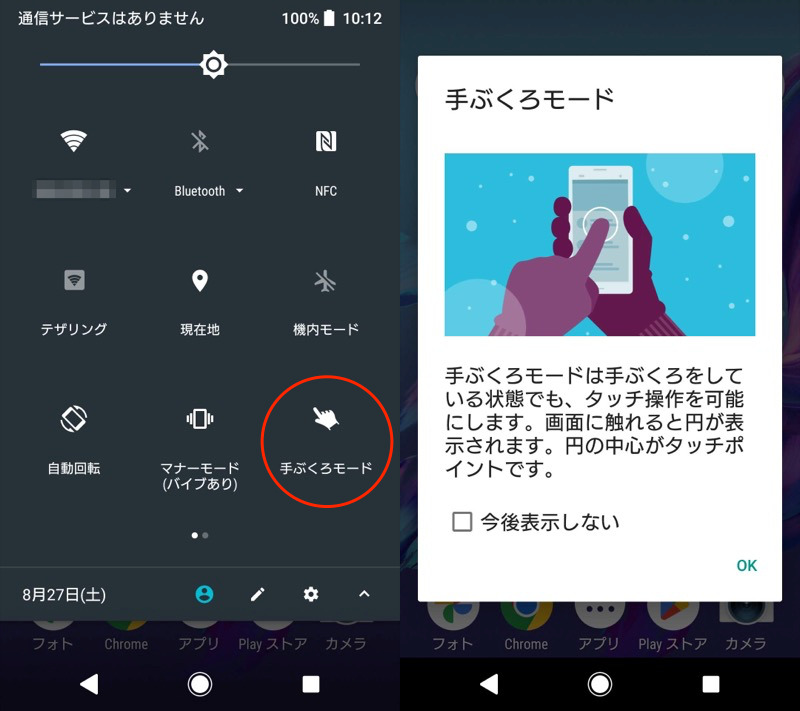开启手套模式时,当您戴着手套触摸屏幕时,触摸的地方会出现一个圆环(圆圈)。