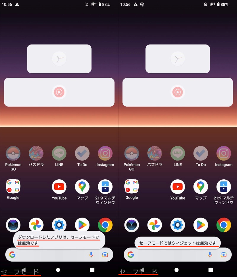 屏幕处于安全模式。 “安全模式”将显示在左下角,并且其他应用程序和小部件将被禁用。