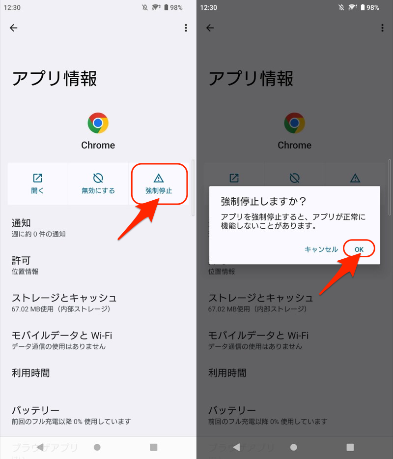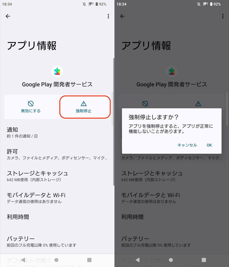 另一方面,强制停止是暂时停止应用程序运行的功能,并在一段时间后自动重新启动(图标不会消失)。