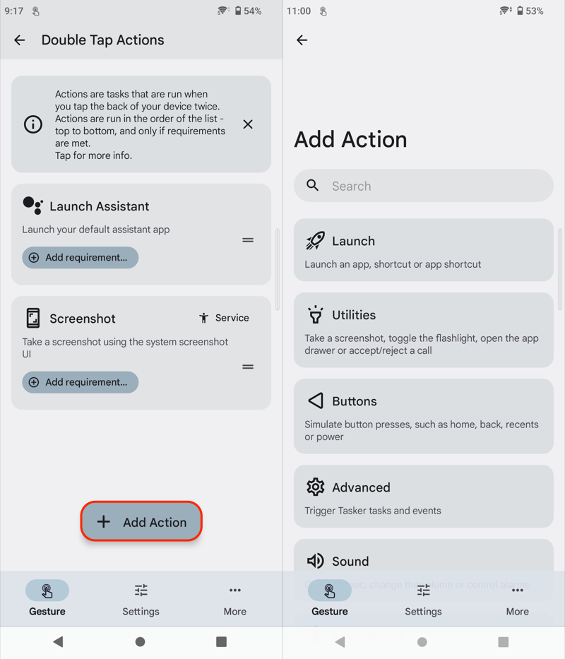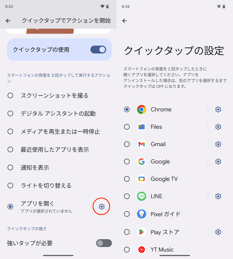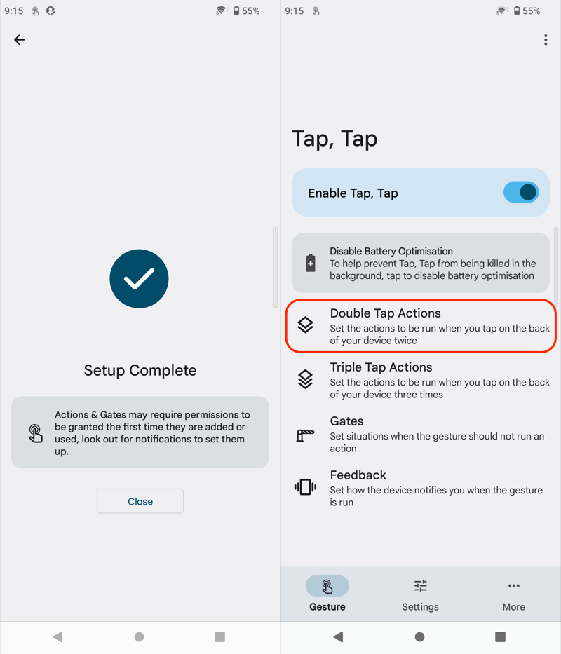 (左)点击两次或三次以执行操作 (右)选择您要分配的功能