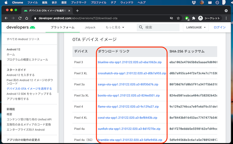 下一个谷歌开发者网站从以下位置下载 Android 12 OTA 映像。
