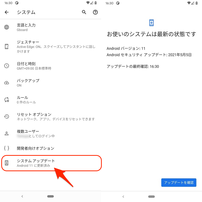 (右)如果出现“您的系统是最新的”消息,则表示正常。