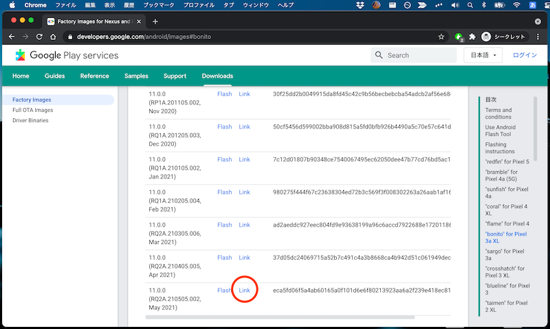 下一个谷歌开发者网站从 下载产品版本工厂映像。