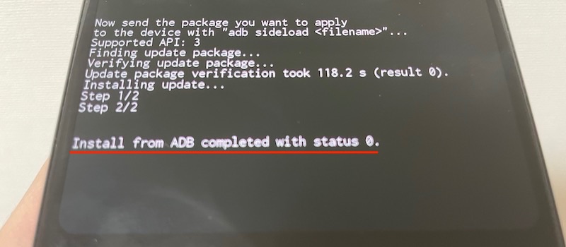 将显示以下消息,并出现 adb sideload 待机屏幕。