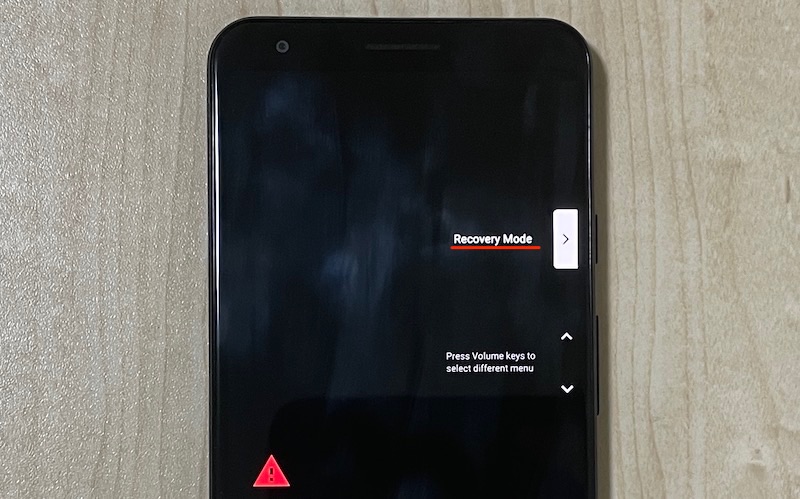 使用音量增大/减小键将菜单切换到“恢复模式”,并使用电源按钮确认。