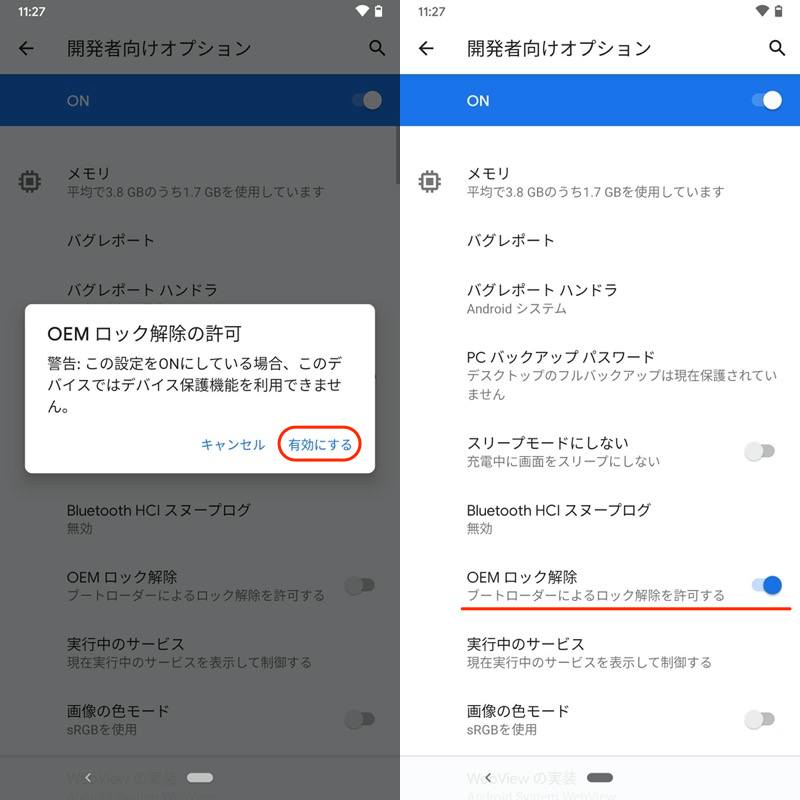 例如2的情况,在开发者选项中OEM 解锁在那之后,