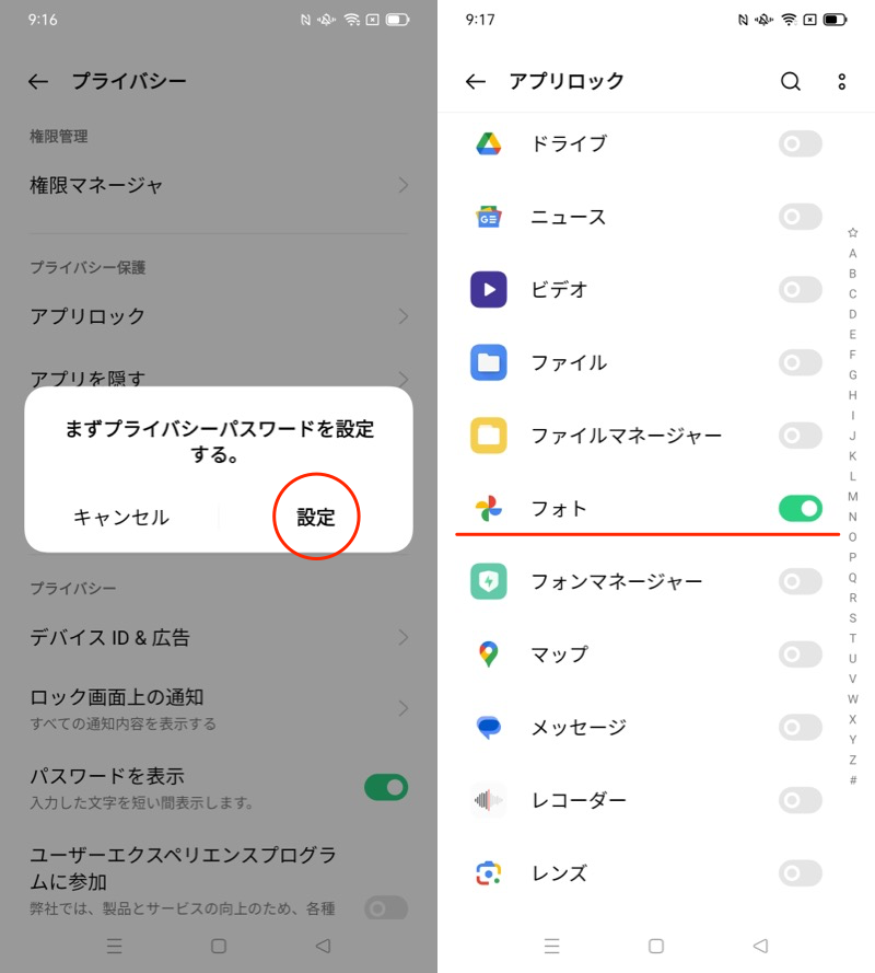 (左)决定要设置的密码等 (右)指定目标应用程序