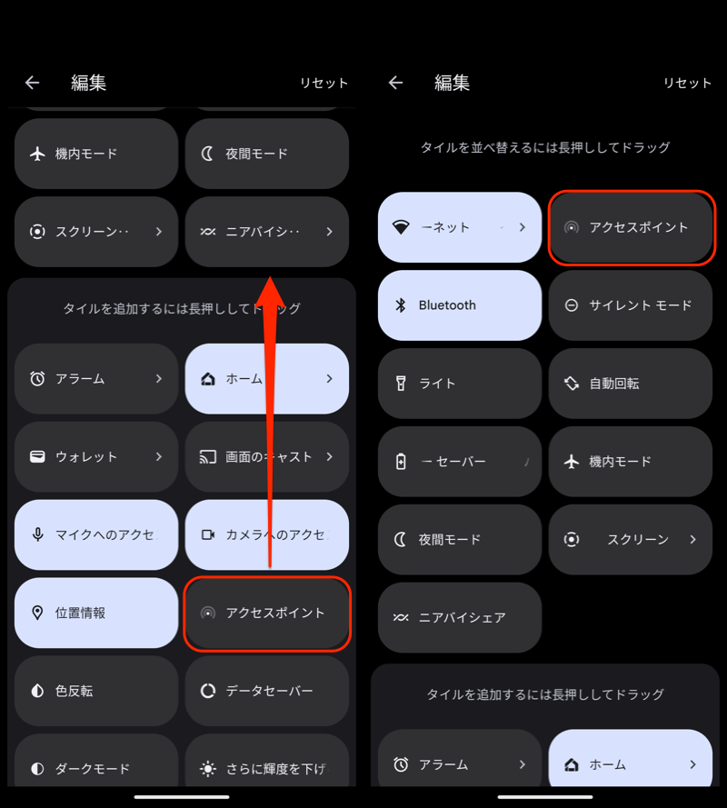 如果您在此处添加专用接入点图块,则可以快速打开/关闭它。