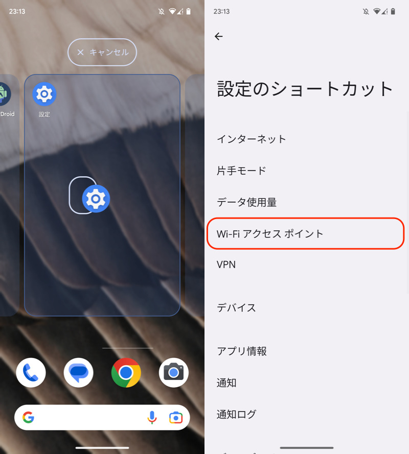 通过拖放将“设置快捷方式”添加到主屏幕,然后在下一个屏幕上选择“Wi-Fi 接入点”。