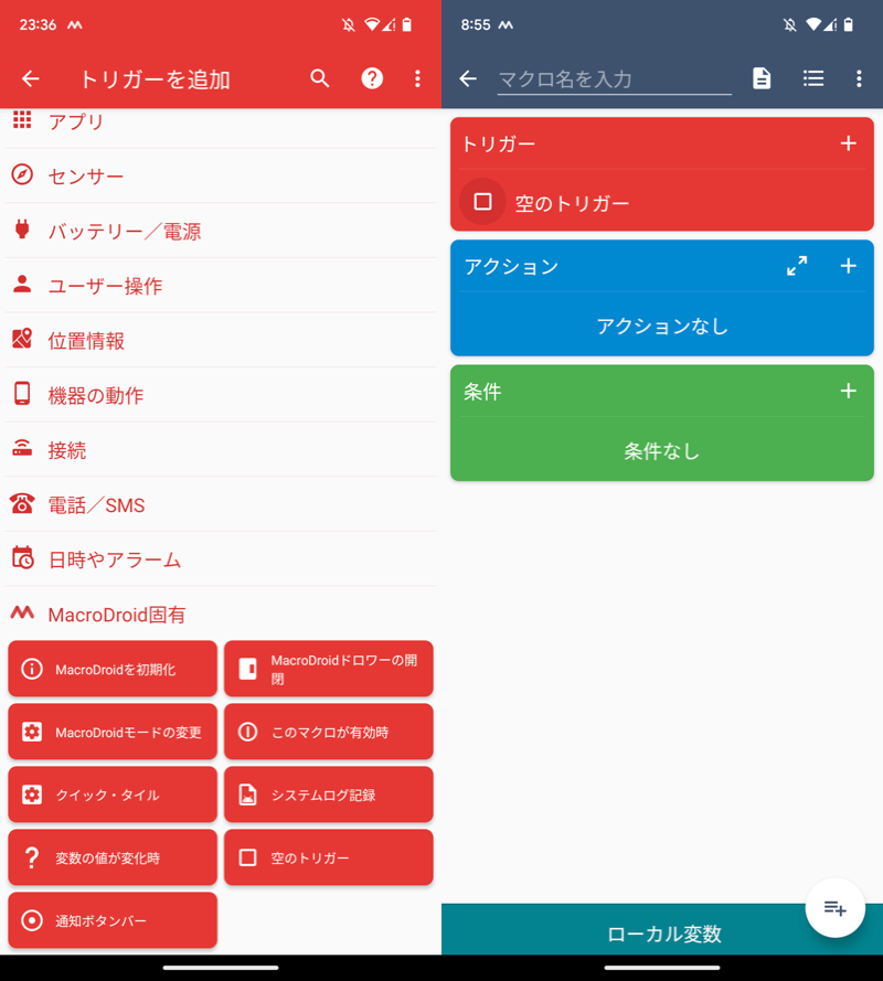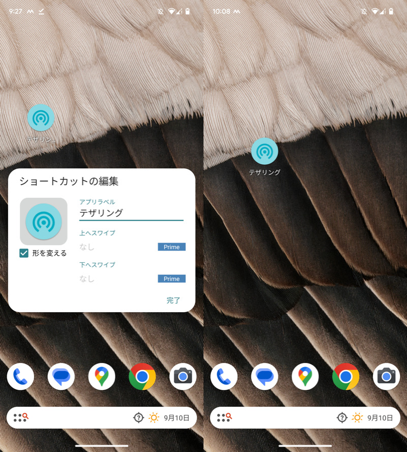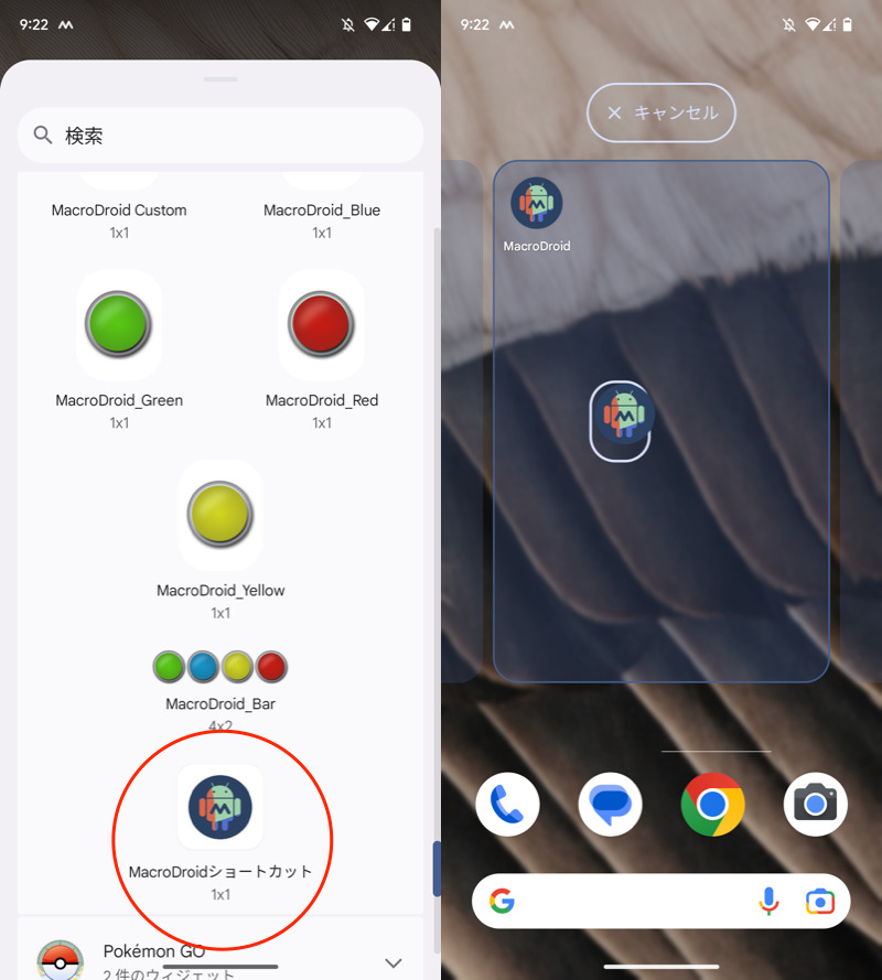(左)MacroDroid快捷方式(右)通过拖动添加到主屏幕