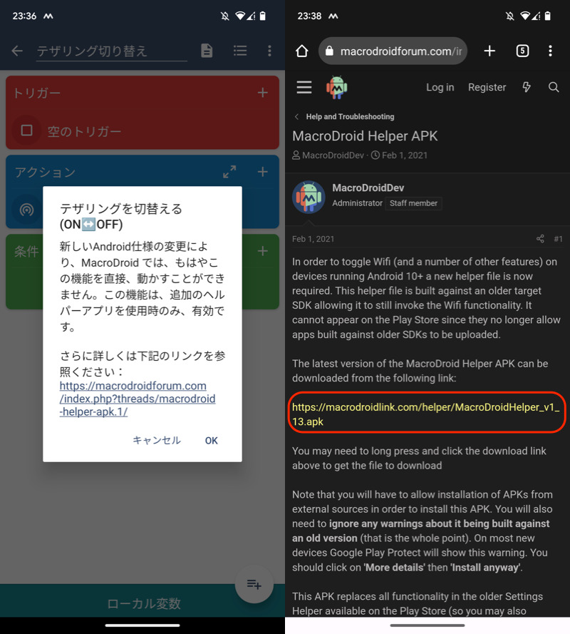 由于需要MD助手介绍,MacroDroid Helper APK 页面链接打开。
