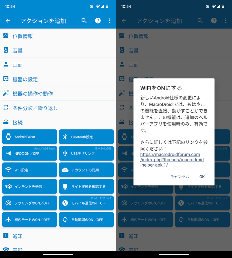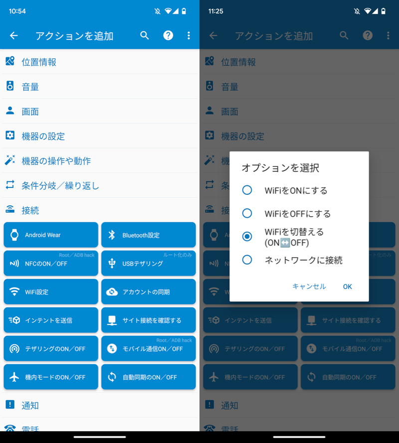 返回MacroDroid并选择“连接”→“WiFi设置”切换 WiFi(开⇔关)查看。