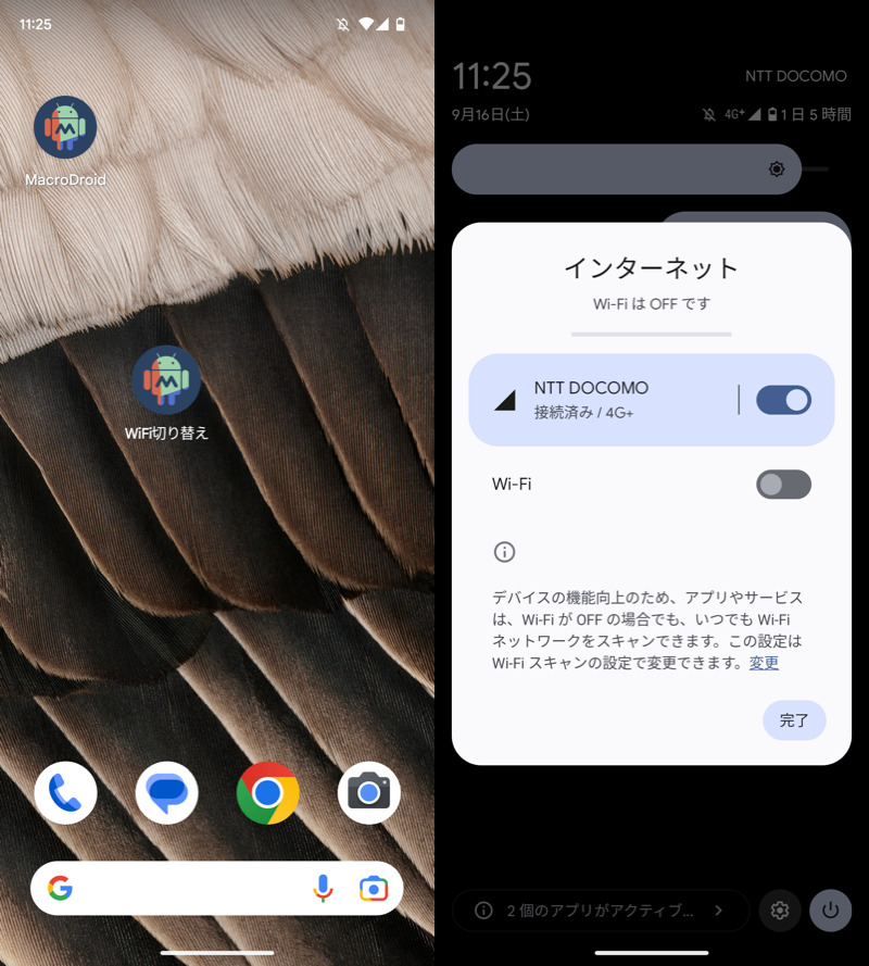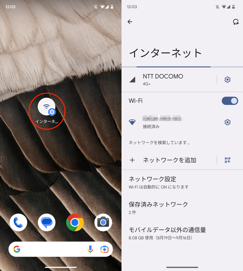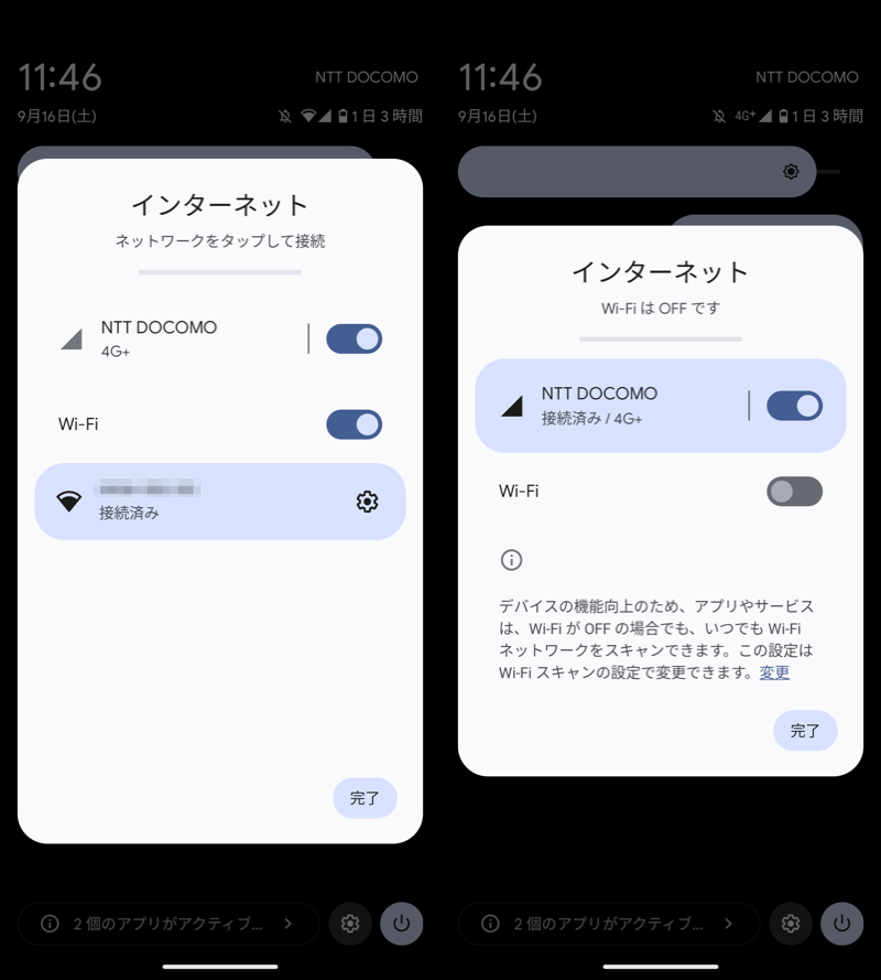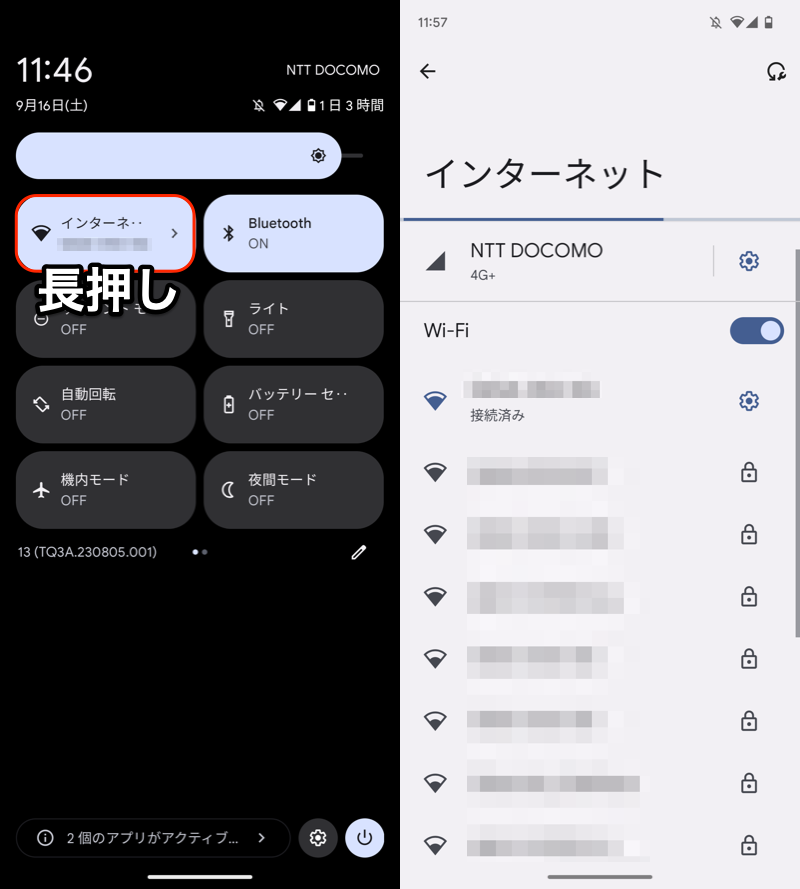 (左)长按 (右)Wi-Fi 设置菜单打开
