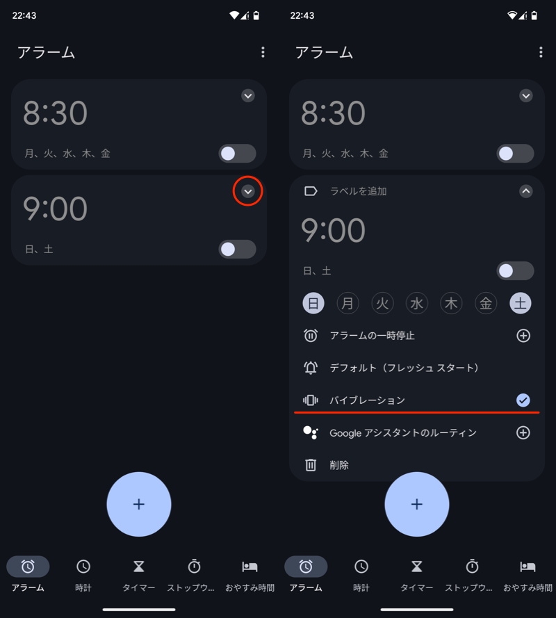 选择一个闹钟并振动确保已选中该选项。