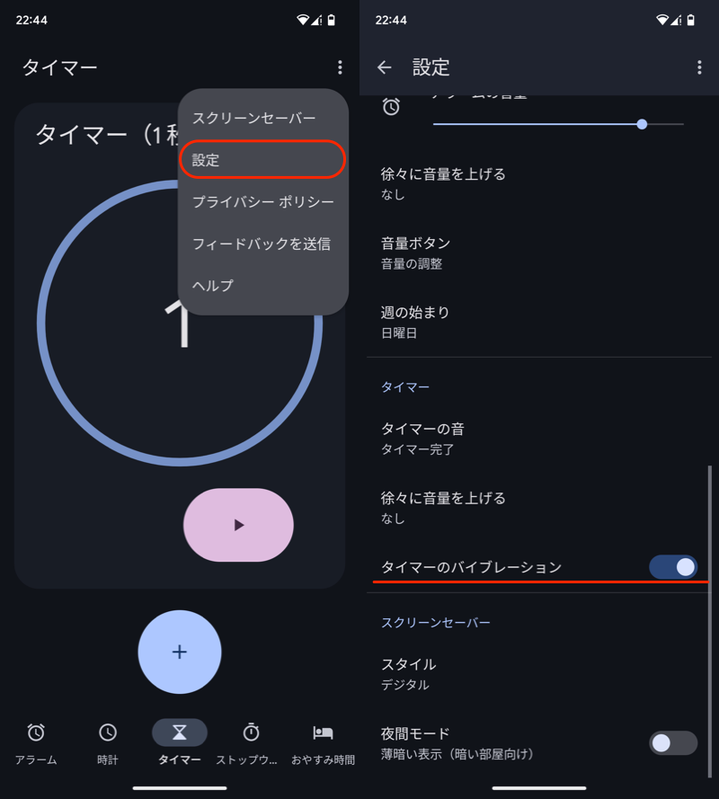 (左)设置(右)定时器振动