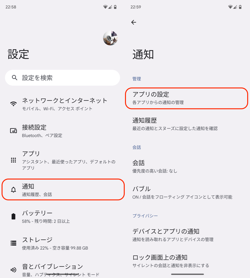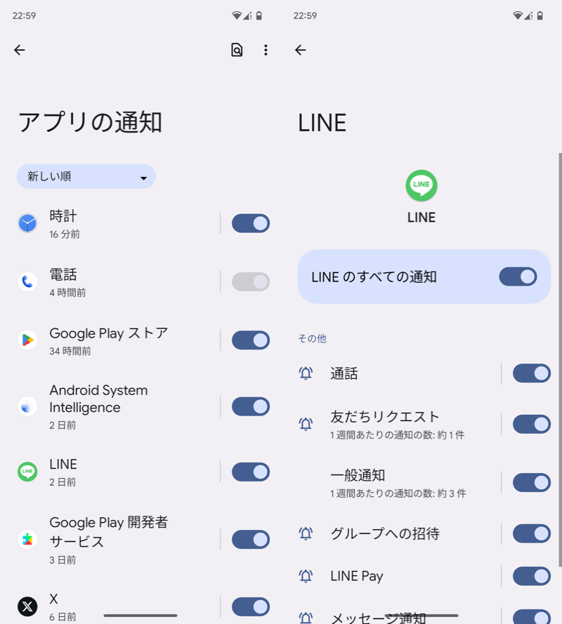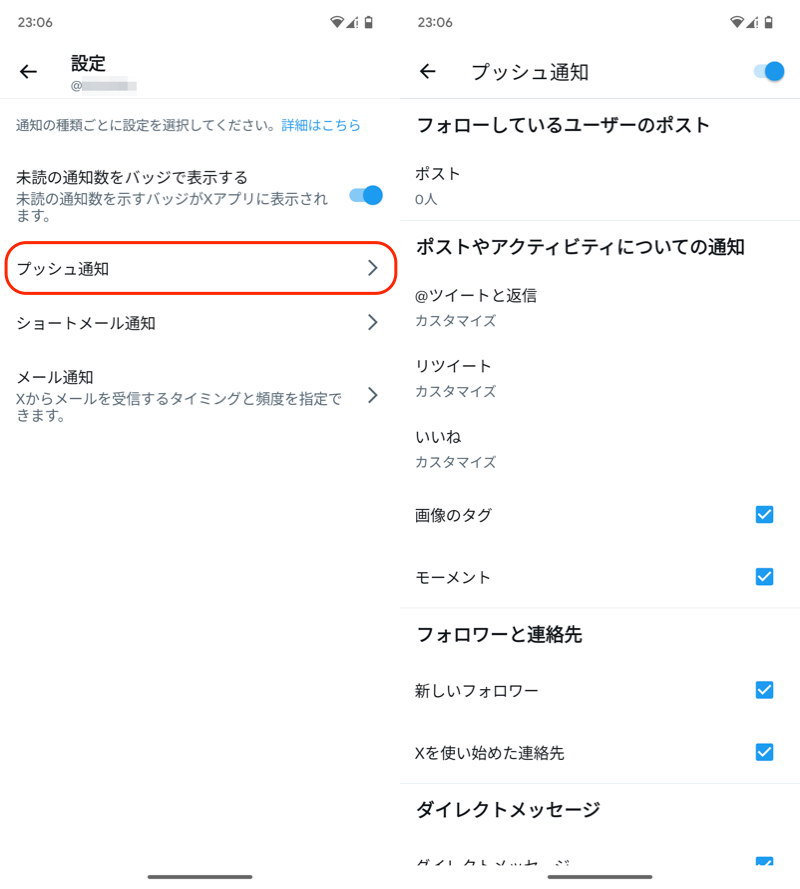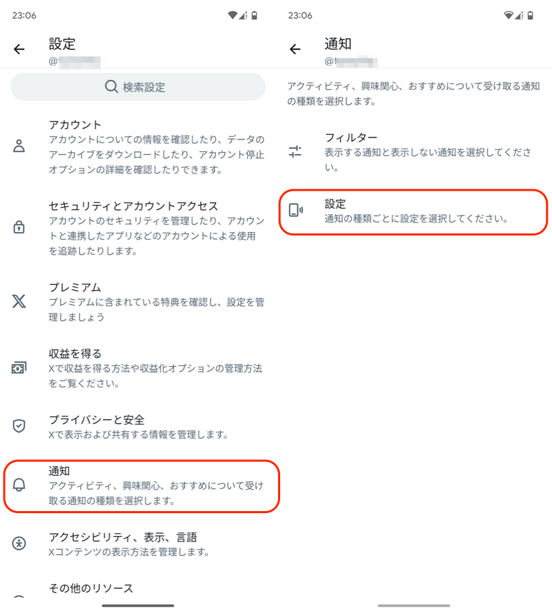 (左)X 设置 → 通知(右)设置