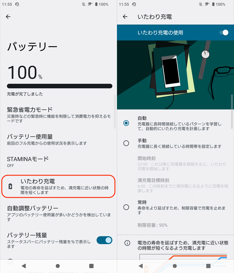 Xperia系列也有类似的功能小心充电”、银河系列“电池保护”、AQUOS系列“智能充电”等等存在。