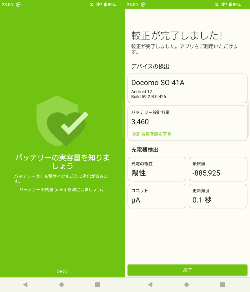 检测到电池设计容量为 3,460mAh 的 Xperia 10 II 的示例