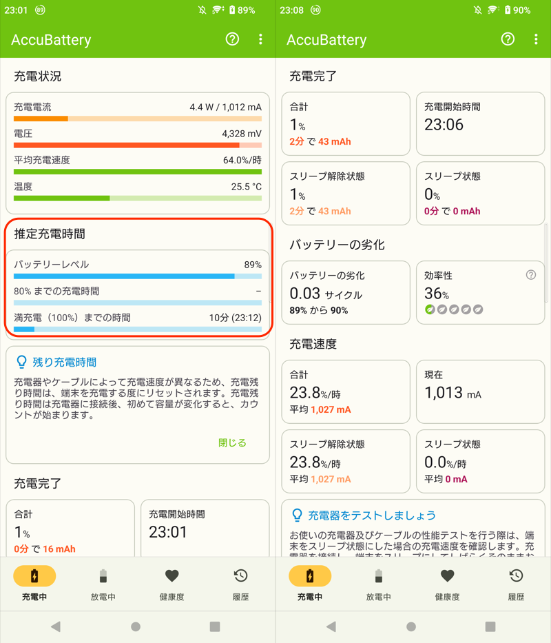 充电开始后,一段时间后,“充电”选项卡的“预计充电时间”中将显示到充满电(100%)的时间。